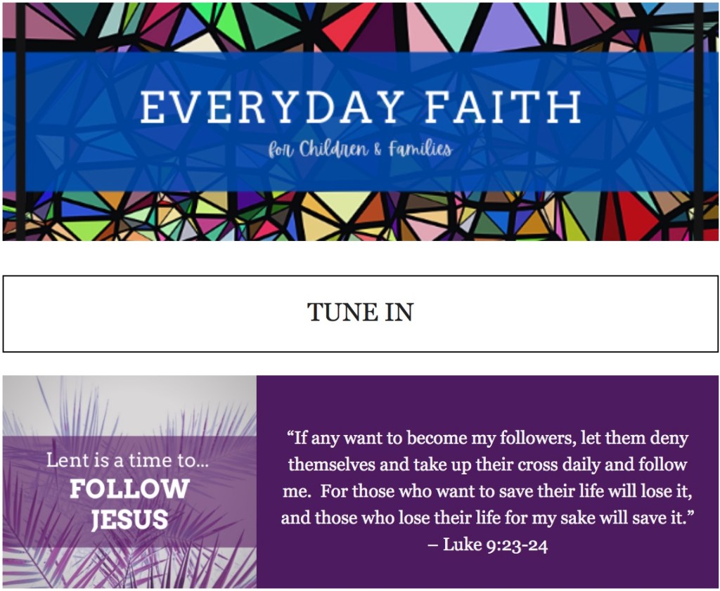 A Weekly Email that can be distributed to families within your congregation. Includes a scripture/prayer focus, a faith at home activity for families, a video component for children, and a parent resource. It can be easily adapted into social media content and it is also available in a customizable HTML format for those who would like to incorporate it into existing congregational emails.